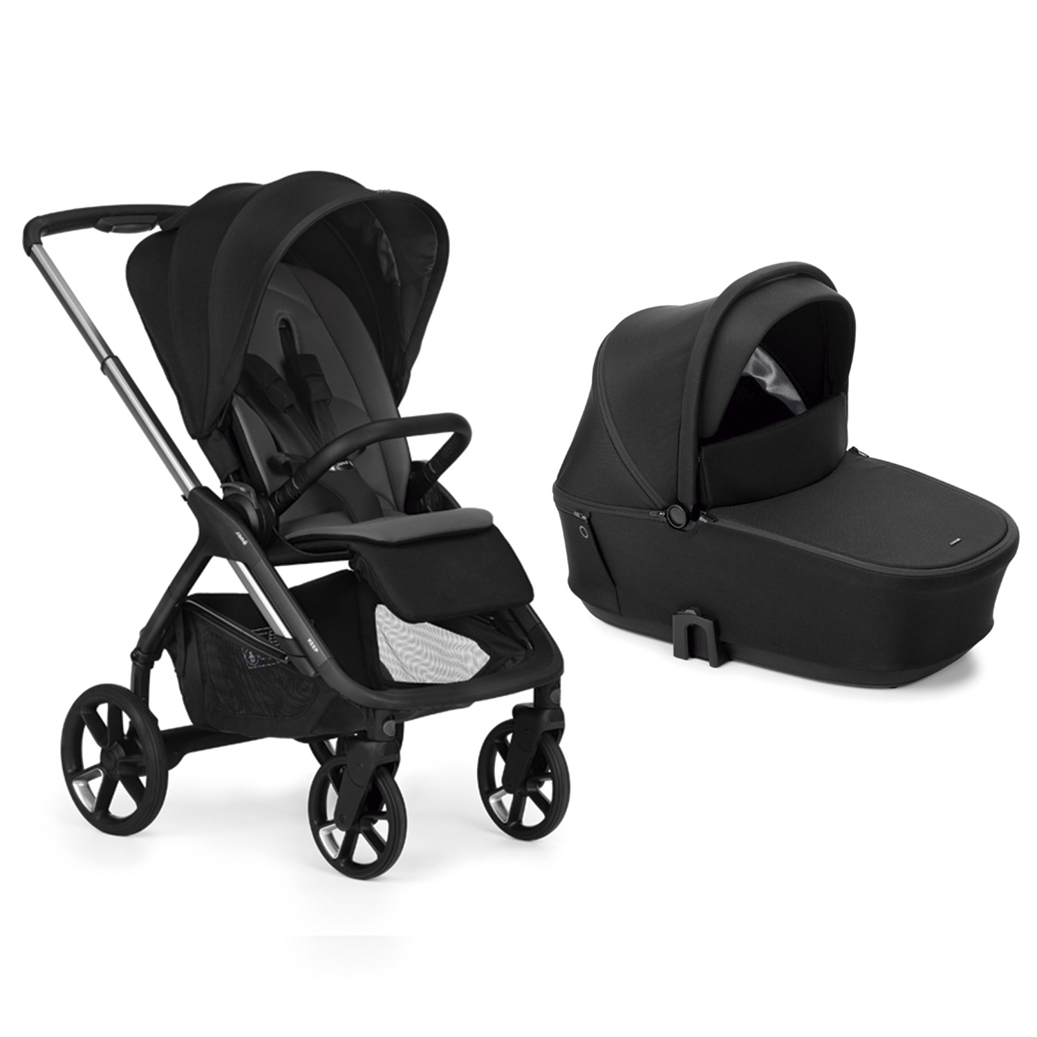 Protector Bumper en polipiel extraíble y articulable. Capota extensible con cremallera y rejilla de aireación. Sistema de anclaje Go-fix Muy fácil de anclar tanto el capazo, como la hamaca y la silla de coche. Cestilla con compartimento Cestilla con compartimento térmico, impermeable y cierre de cremallera. Hamaca reversible Orientable en ambos sentidos de la marcha. Respaldo de 53 cm de altura, reclinable en 3 posiciones (100° – 170°). Reposapiés ajustable en 3 posiciones.Freno fácil de accionar y desbloquear pulsando con la planta del pie. Ruedas de PU grabado, diseñadas para moverse fácilmente en cualquier tipo de superficie. Suspensión total en a las cuatro ruedas. Arnés magnético de 5 puntos con cierre magnético y ajuste sencillo con solo tirar de la correa. Plegado fácil y compacto con la hamaca instalada en ambos sentidos de la marcha y se mantiene de pie sola.